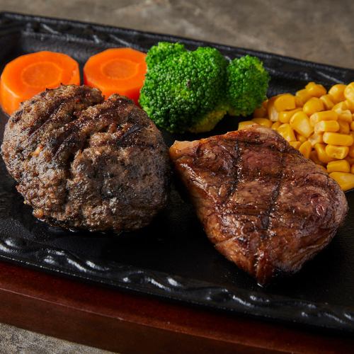 当店自慢の松阪牛入りハンバーグ(180g)とステーキ(100g)を一挙に楽しめるコンボプランです!