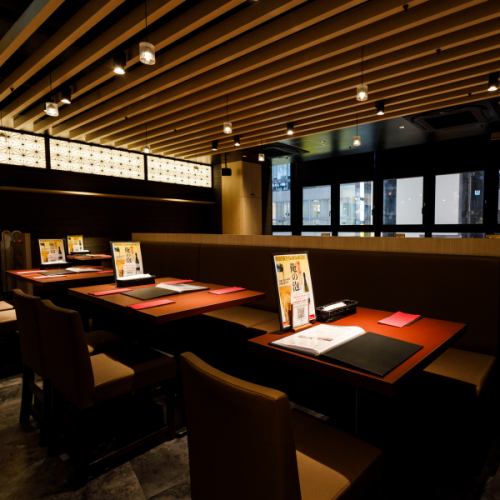 人気No.1の窓際ソファー席です!!人通りが多い渋谷井の頭通りを見下ろす席は時間を忘れるほどの居心地。大きな窓から採光される光がステーキをよりおいしそうに照らしてくれます!!【渋谷 センター街 俺の 和牛 黒毛和牛 ステーキ ハンバーグ 松阪牛 炭火 宴会 女子会 忘新年会 飲み会 飲み放題 貸し切り ランチ】